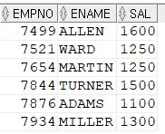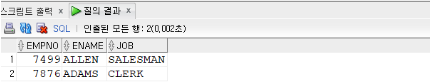 급여 1000 ~ 2000 의 사원들의 정보가 출력되는 것을 확인할 수 있습니다.