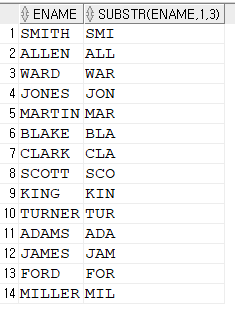 SELECT ENAME, SUBSTR(ENAME, 1, 3)