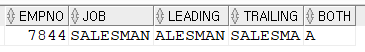 SELECT EMPNO, JOB, TRIM(LEADING 'S' FROM JOB) LEADING,