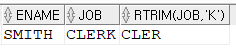SELECT ENAME, JOB, RTRIM(JOB, 'K')